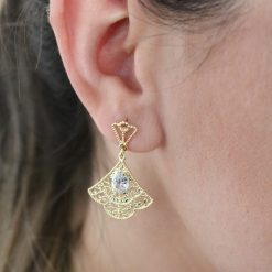 Conjunto de pizza cravejado com micro zirconias banhado a ouro com garantia eterna do banho.